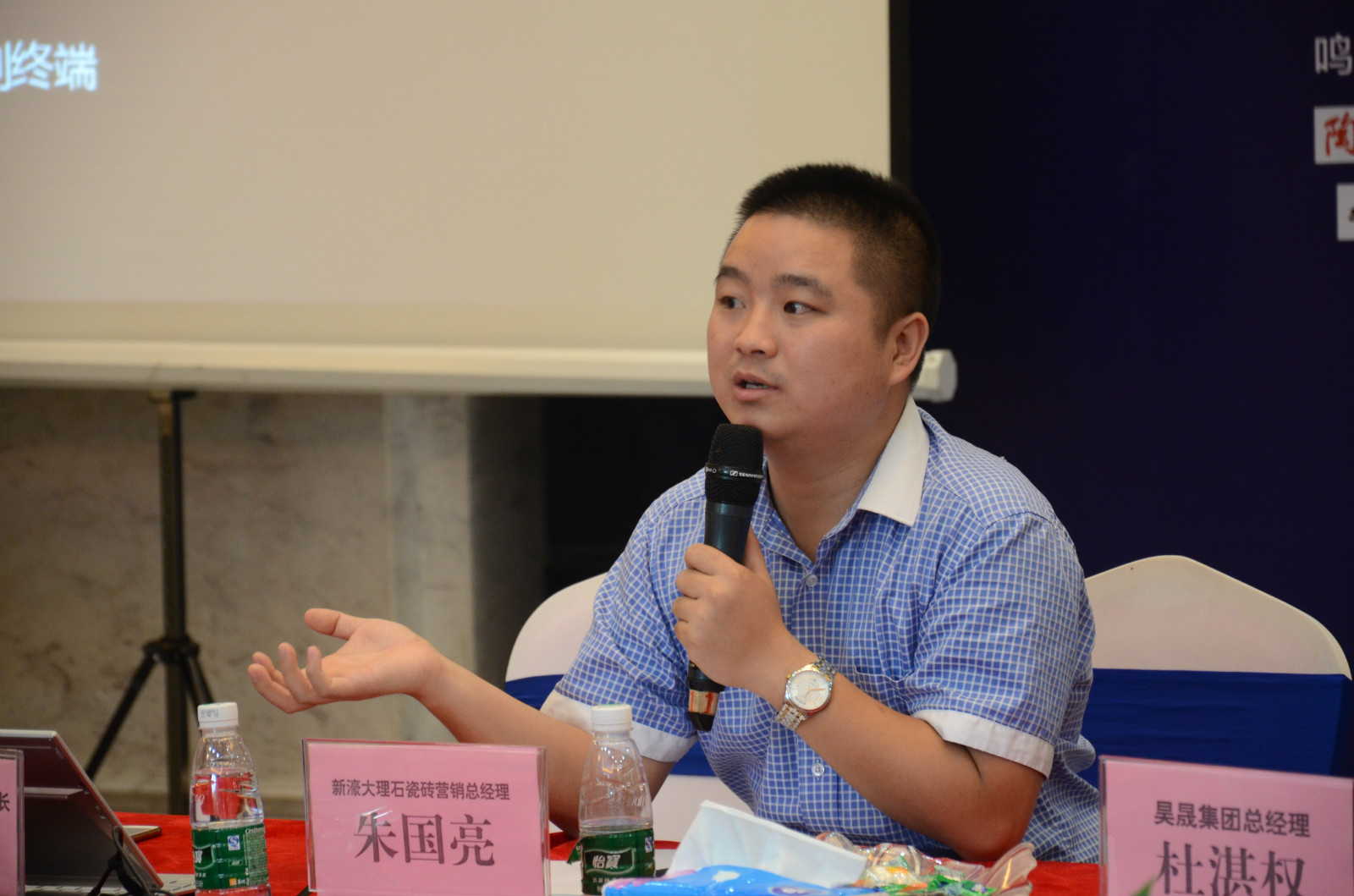 新濠大理石瓷磚品牌營銷總經理朱國亮做工作報告