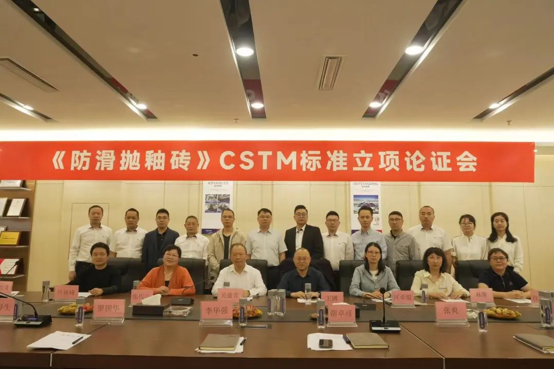 近日,中國材料與試驗標準化委員會(CSTM)建材領域委員會(F03)建筑衛生陶瓷及衛浴制品標準化技術委員會(TC07)組織召開了《防滑拋釉磚》CSTM標準立項論證會。會議由咸陽陶瓷研究設計院標準室主任、TC07秘書長王博主持,論證會的專家和委員有:佛山市質量計量監督檢測中心副主任區卓琨、高級工程師吳清良、佛山海關綜合技術中心教授級高工肖景紅、廣東新明珠陶瓷集團有限公司研究院院長吳建青、廣東東鵬控股股份有限公司品質工程師孔慶福、廣東金牌陶瓷有限公司副總裁張代蘭、佛山市陶瓷研究所控股集團股份有限公司總經理林珊、副院長李家鐸、廣東新中源陶瓷有限公司經理潘榮。參加會議的項目負責起草單位人員有:新濠超防滑大理石瓷磚總經理謝卓彥、廣東昊晟陶瓷有限公司市場部副總經理張爽、工廠生產經理李華強、質檢物流部經理朱風焰、拋光車間主任羅國華、產品研發總監宮成偉、產品研發總監康春生、技術研發負責人許林峰。