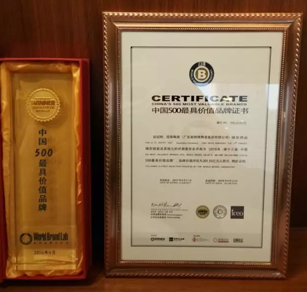 6月22日,2016年(第十三屆)“中國500最具價值品牌”發布會在北京隆重召開,冠珠陶瓷以201.55億元位列第176位,較去年(140.69億元)增長60.86億元。今年,已是冠珠陶瓷品牌連續第十二年蟬聯中國500最具價值品牌榜,品牌形象更加深入人心。